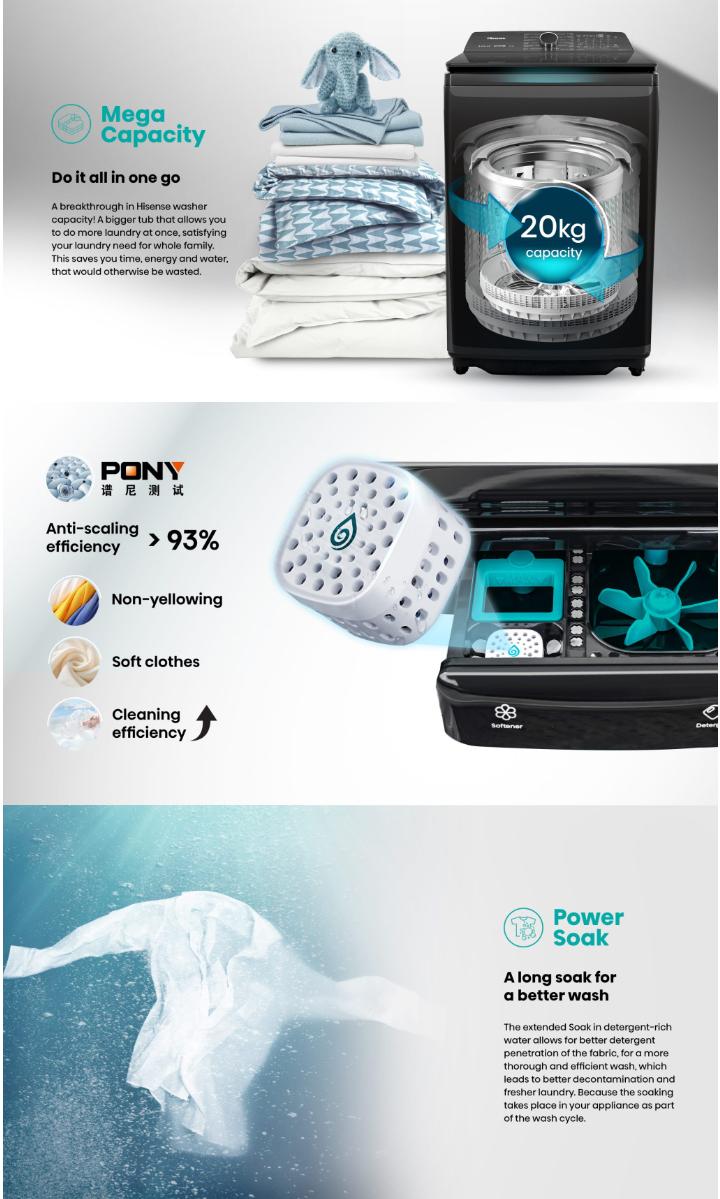 Washer & DryerHisense 22KG Top Load Inverter Washer WT220Q50